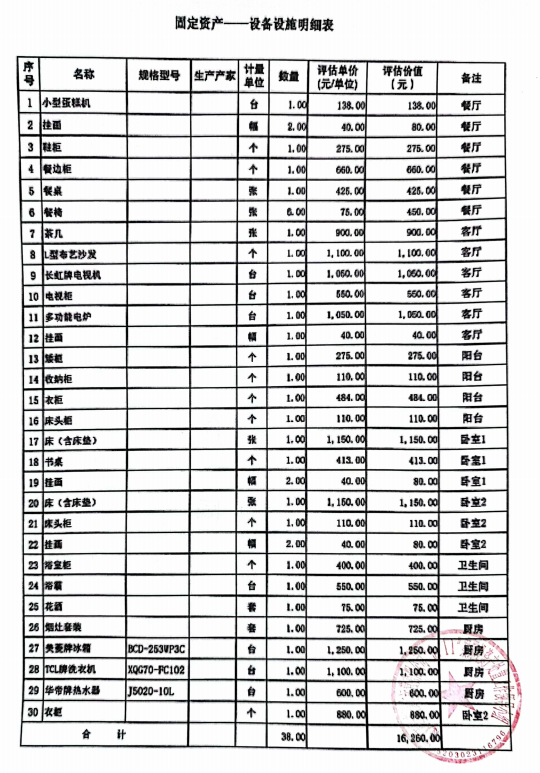 | 固定資產 | 設施設備 | 詳見附件“設施設備明細表” | ||||||